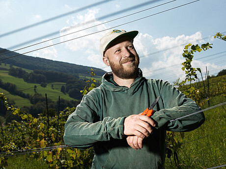 Der gelernte Maurer Tom Litwan betreibt seit 2006 mit viel Herzblut und Engagement sein kleines Weingut in der Nordwestschweiz. Dort verwirklicht er seine Vorstellung von authentischen Weinen aus den verschiedenen Lagen rund um Schinznach, im Kanton Aargau. Auf gut 5.5ha Rebfläche, kultiviert er Riesling-Silvaner, Pinot Noir und auch grandiose Schaumweine aus vergessen geglaubten Trauben.